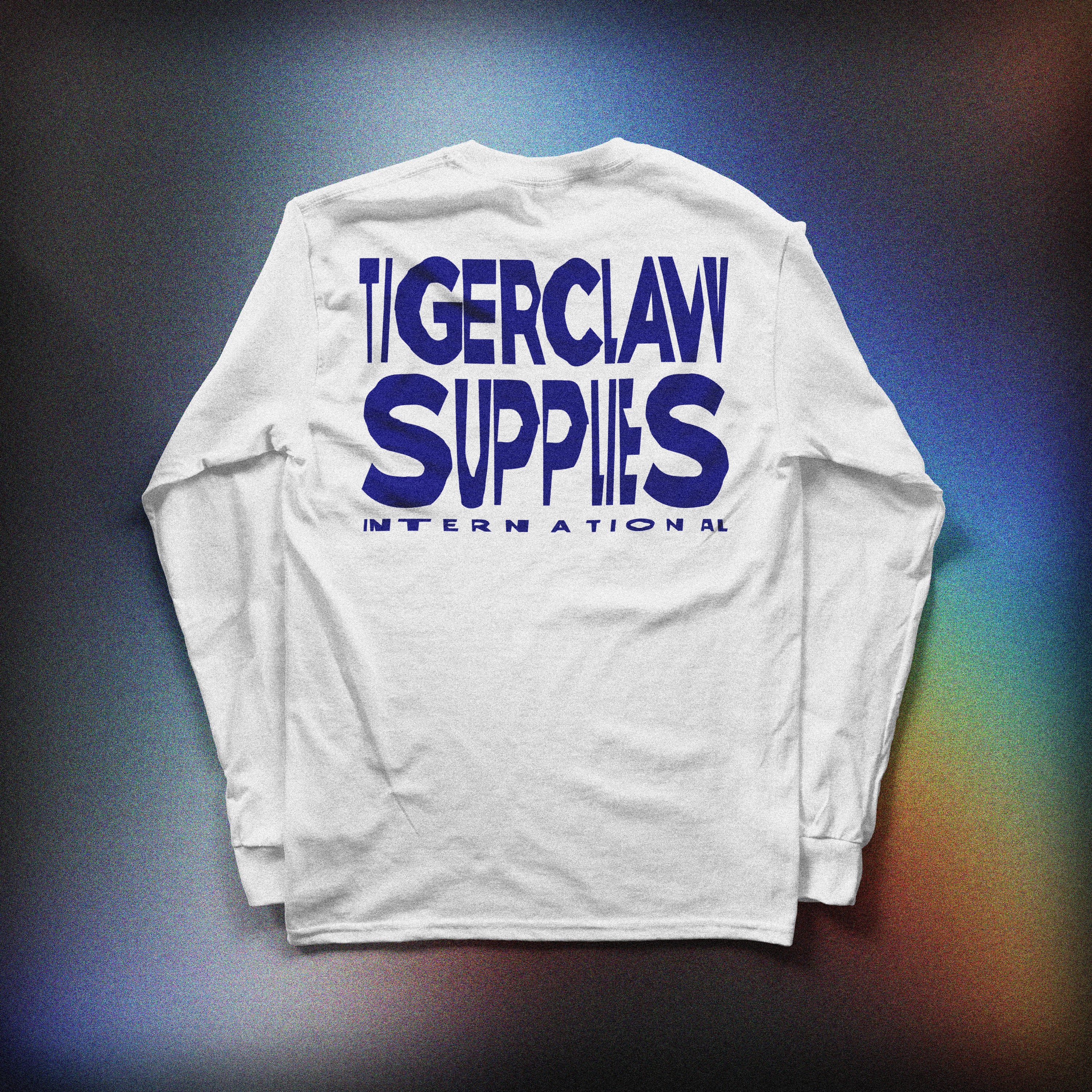 Featuring a minimal “TC” logo on the front and bold “TIGERCLAW SUPPLIES INTERNATIONAL” typography on the back, this piece blends classic comfort with graphic impact. Made from soft, heavyweight cotton for an easy drape and long-lasting wear. Ribbed cuffs, a structured collar, and a woven label at the hem complete the look.